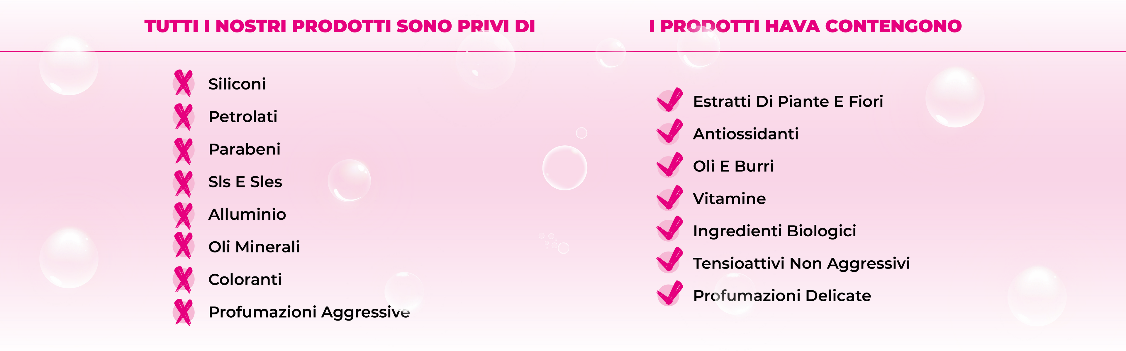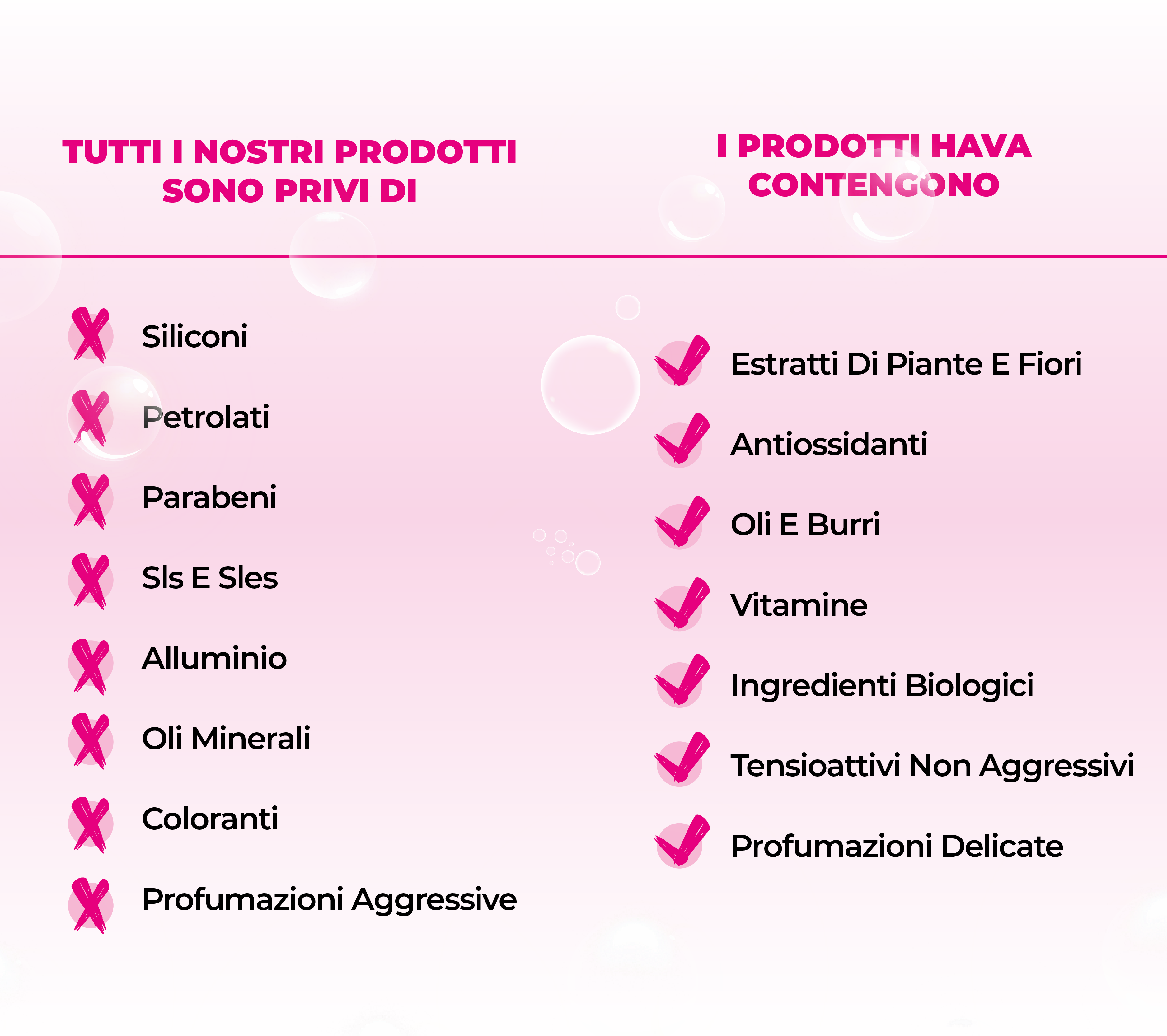 Tutti i prodotti Hava sono privi di Siliconi, Parabeni, SLS e SLES, alluminio, oli minerali, coloranti e profumazioni aggressive.