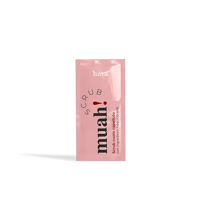 Per questo motivo Hava propone lo scrub Muah! che riattiva il microcircolo, rimuove sebo in eccesso e impurità e detossina la cute preparandola al meglio a ricevere i benefici dello shampoo.